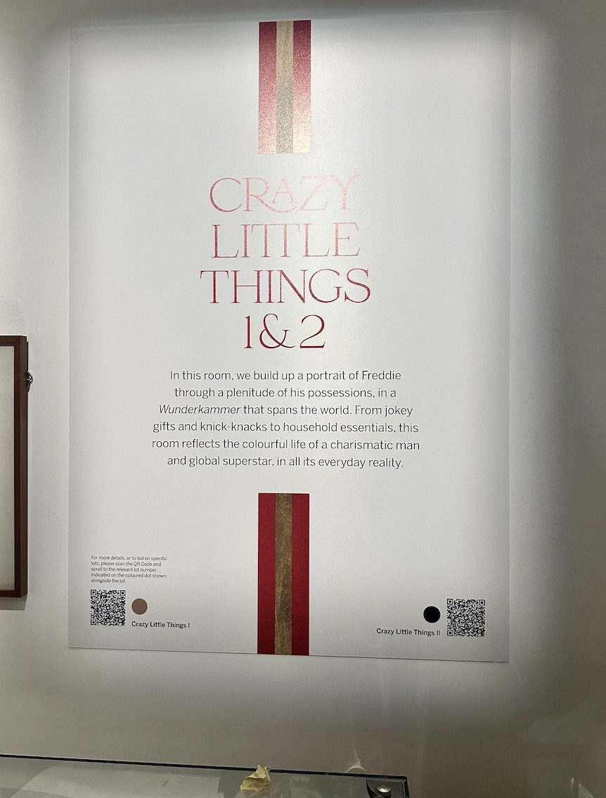 Als weltbekannter Rock-Superstar war Freddie Mercury wohl auch abseits der Bühne ein sehr geschätzter Sammler. So steht an einer Wand in der Ausstellung „Das Einzige, was ich wirklich vermissen würde, wenn ich Großbritannien verließe, wäre Sotheby’s.“