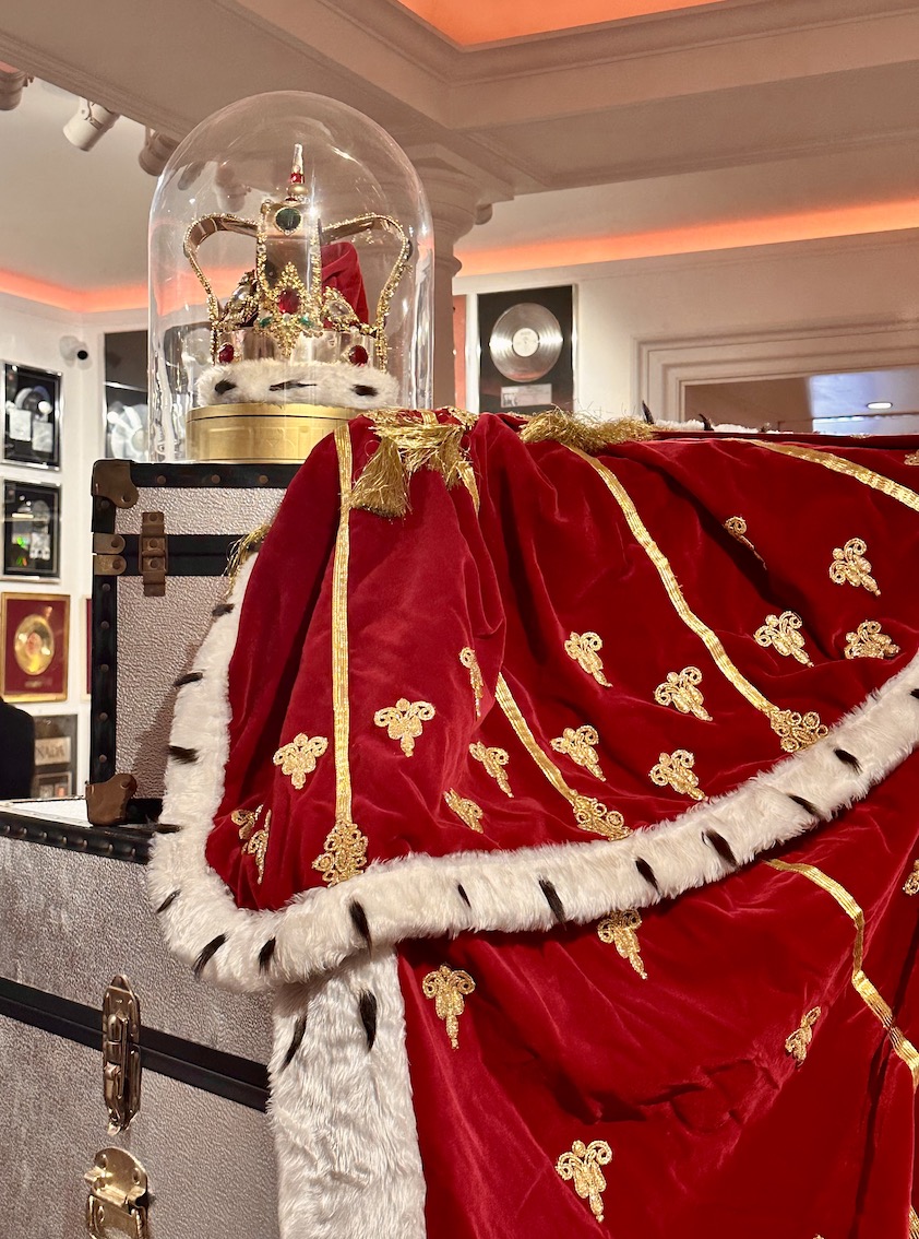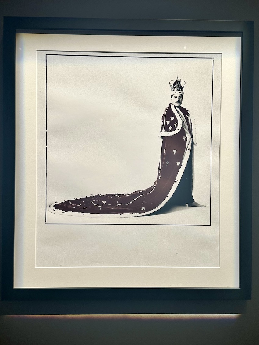 Bühnenkostüme, darunter auch Freddie Mercurys charakteristisches Ensemble aus Krone und Umhang, das er während der „Magic“-Tour von Queen 1986 trug.