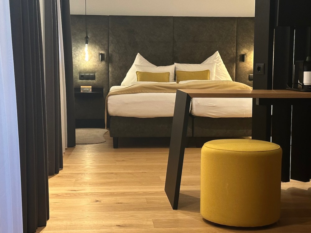 Hier fühlt ihr euch sofort wohl und heimelig. Der Holzboden, die tollen Materialen und die moderne Wandgestaltung hat uns sofort begeistert.