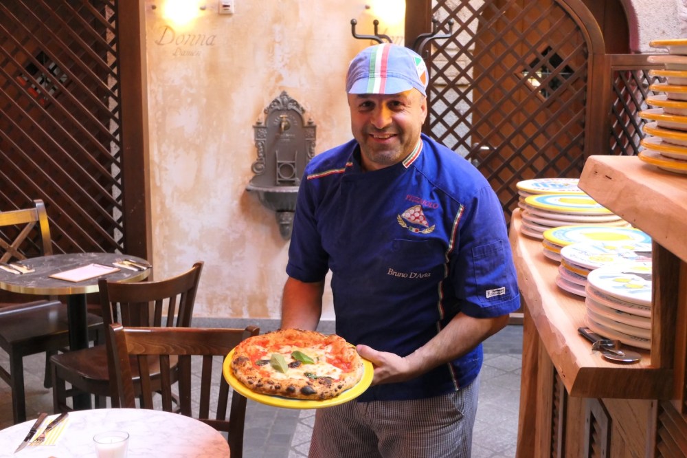 Und als wäre das noch nicht italienisch genug, steht neben dem Pizza-Ofen der Weltmeister im Backen von Pizza Napoletana : Bruno D’Aria.
