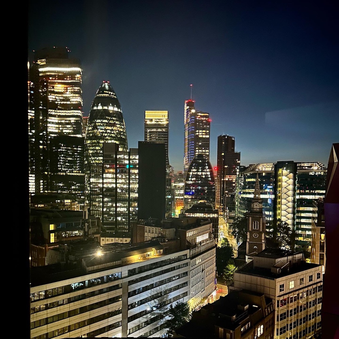 Extra gegönnt haben wir uns diesmal den Ausblick mit Aufpreis. Dann sind die Zimmer in den oberen Stockwerken, entweder vorne raus mit einem etwas eingeschränkten Blick auf Tower, Tower Bridge und Shard oder auf der Rückseite mit diesem gigantischen Skylineblick.