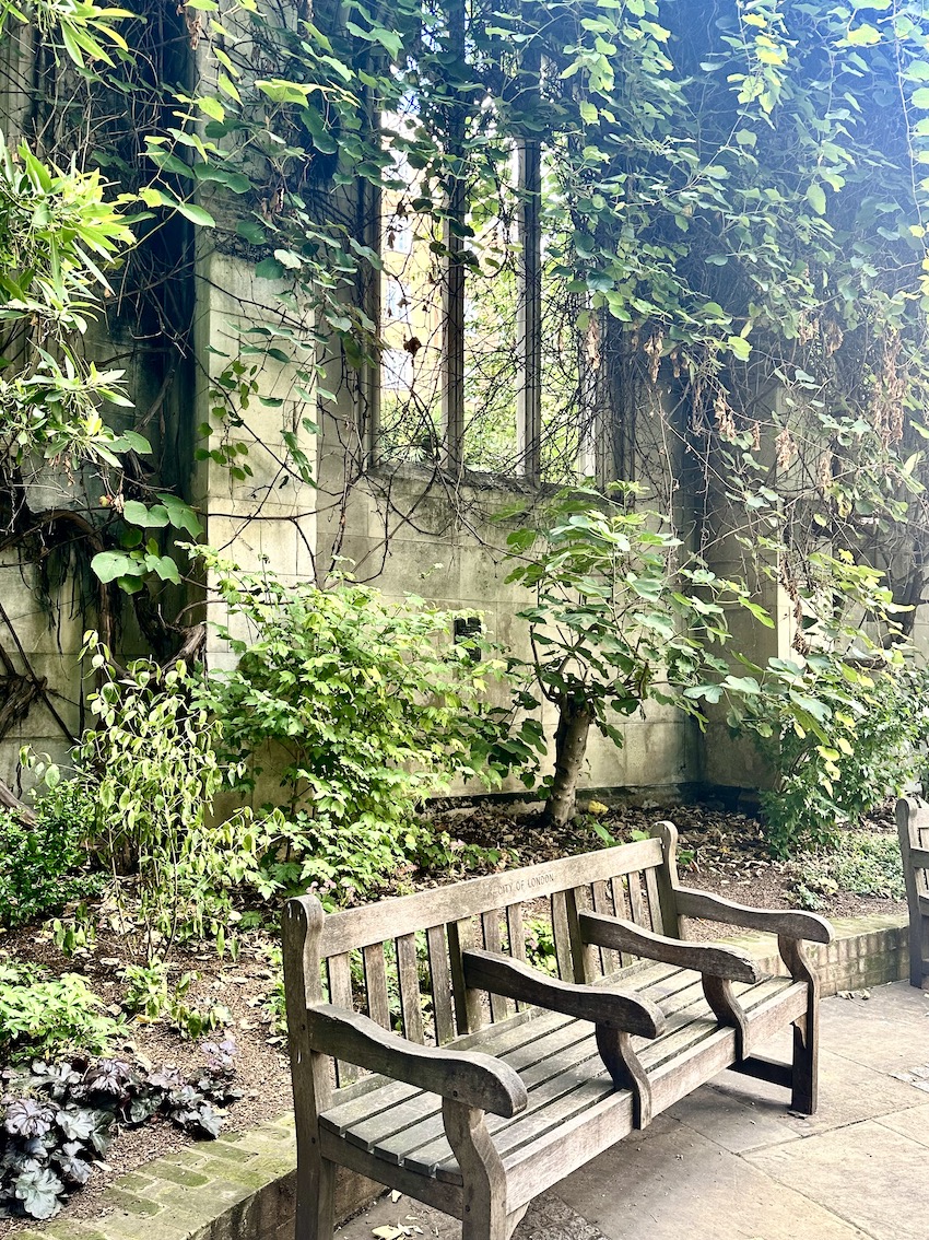 Die ehemalige Kirche wurde im zweiten Weltkrieg weitgehend zerstört und die Ruinen sind jetzt ein öffentlich zugängiger Garten in London.