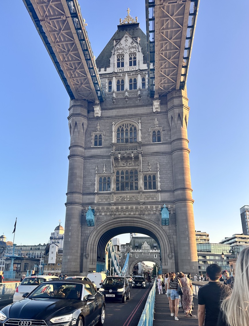 Im Internet habe ich mir die Zeiten rausgesucht, zu denen sich die Brücke für ein Schiff öffnet https://www.towerbridge.org.uk/lift-times um rechtzeitig vor Ort zu sein. Während unseres London-Trips im August wurde sie nur an 2 Tagen geöffnet.