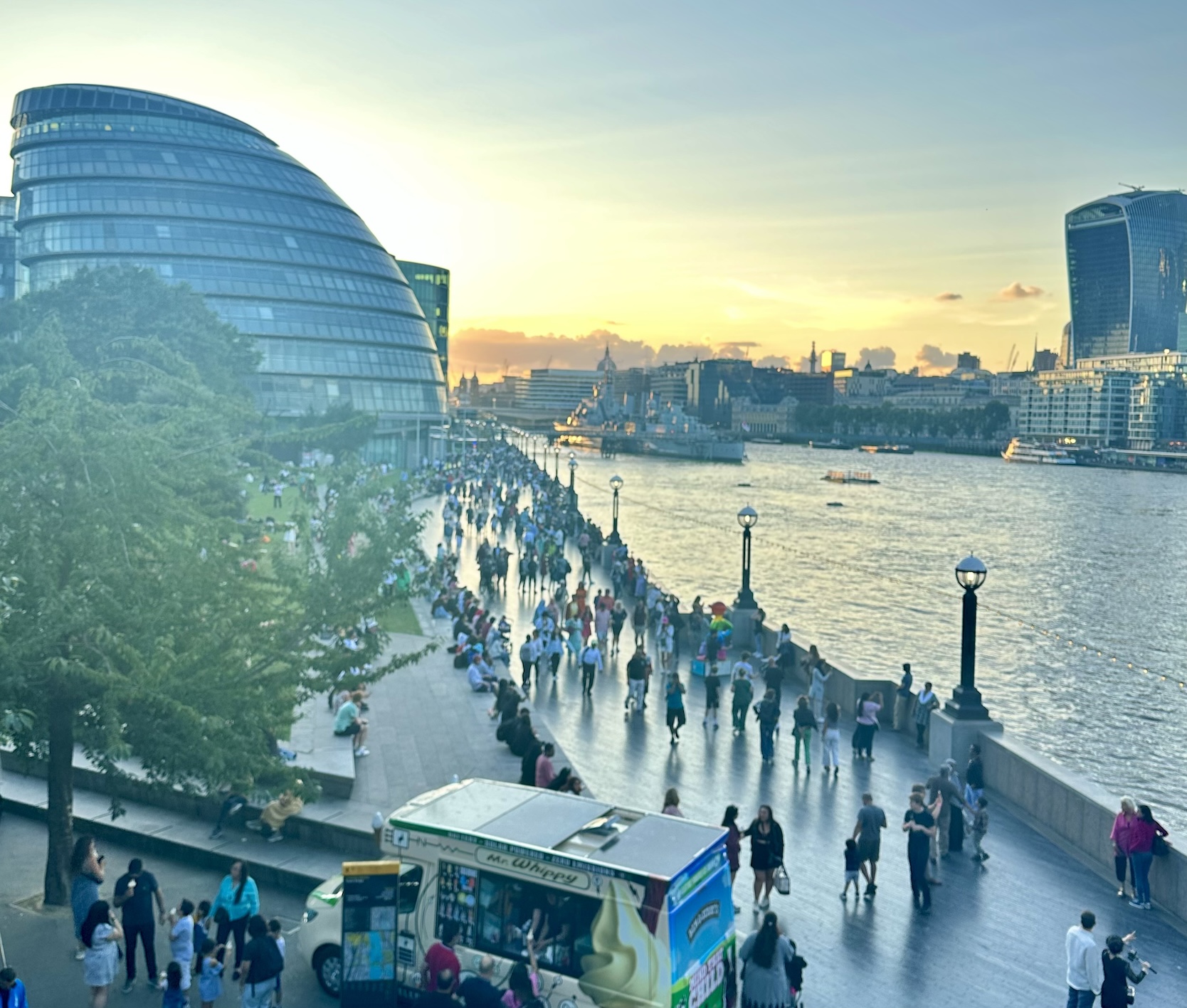 Wenn mir schon kein Blick aus dem Hotelzimmer auf die Tower Bridge vergönnt war, wollte ich zumindest beim Abendessen diesen Blick genießen. Das italienische Restaurant Tavolina liegt dafür perfekt: https://www.tavolino.co.uk