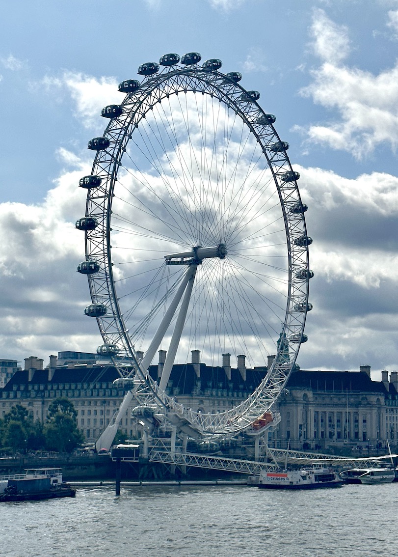 Zu Fuß über die Waterloo Bridge, unsere dritte Brücke, kommen wir dem weltbekannten London Eye immer näher.