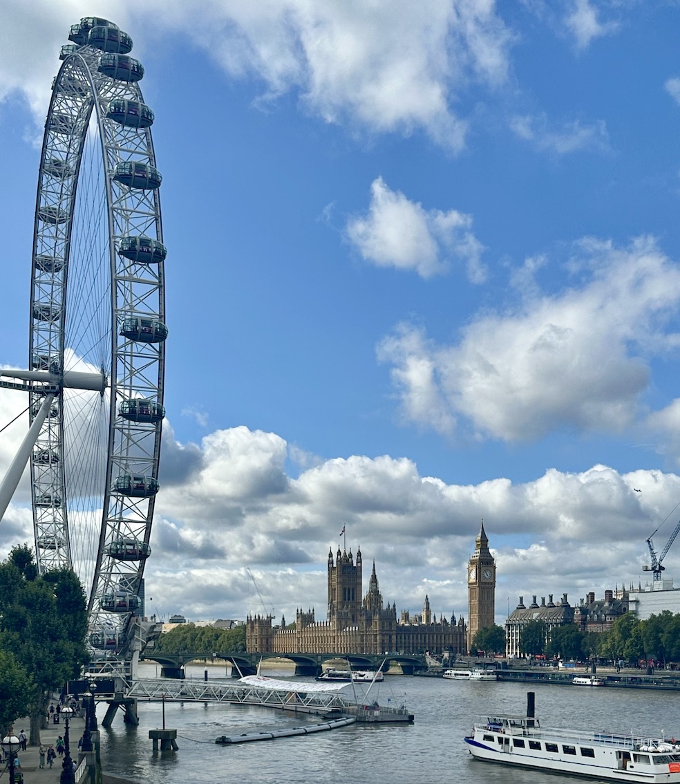 Genießt von hier den Blick auf das London Eye und auch auf Big Ben auf der anderen Seite