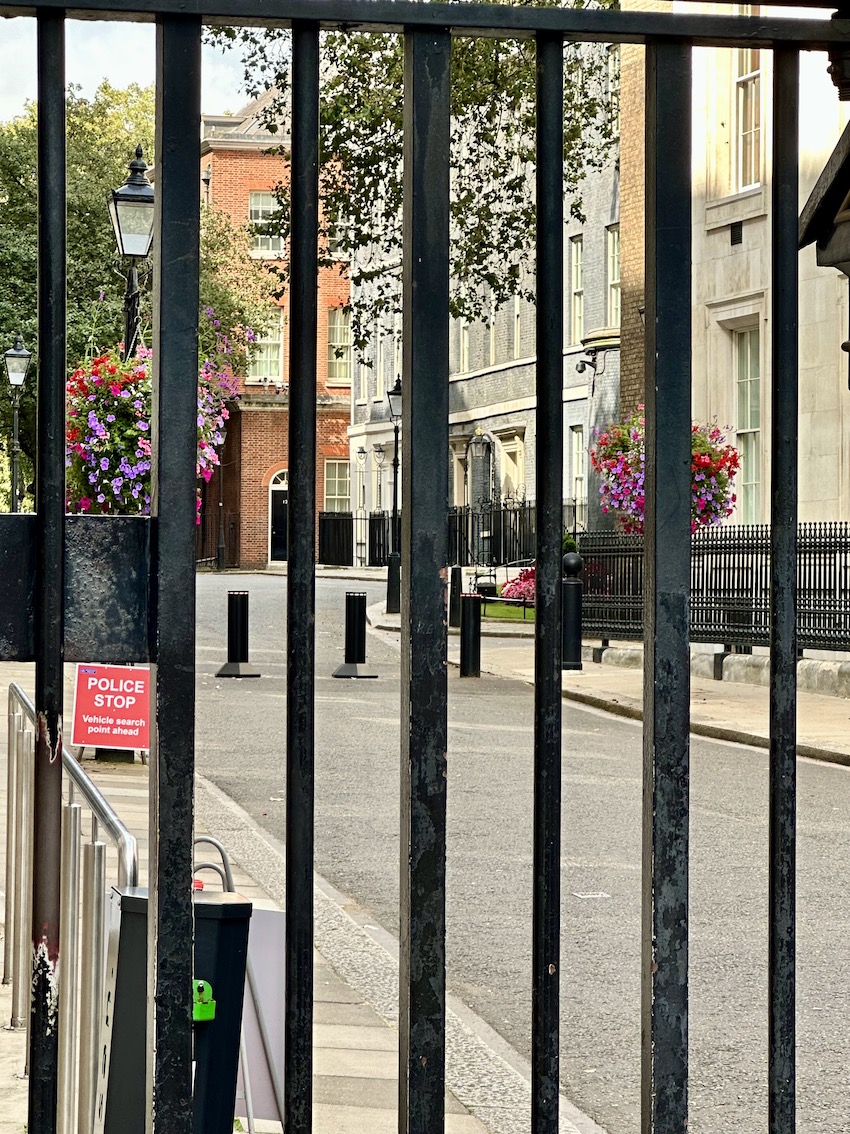 Ein paar Schritte weiter steht ihr vor der bestens bewachten Downing Street. Downing Street 10 ist der offizielle Amts- und Wohnsitz des Premierministers.