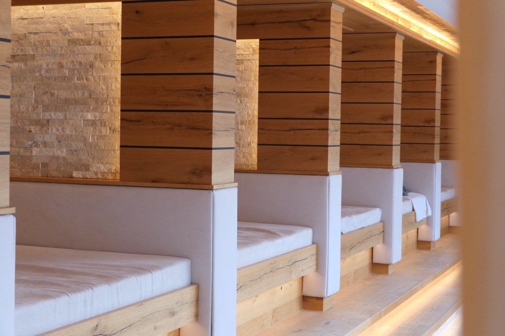 Unseren Lieblingsplatz haben wir ganz oben gefunden, gleich neben dem Sky-Sole-Infinity-Pool und dem Sky-Thermal-Whirlpool.