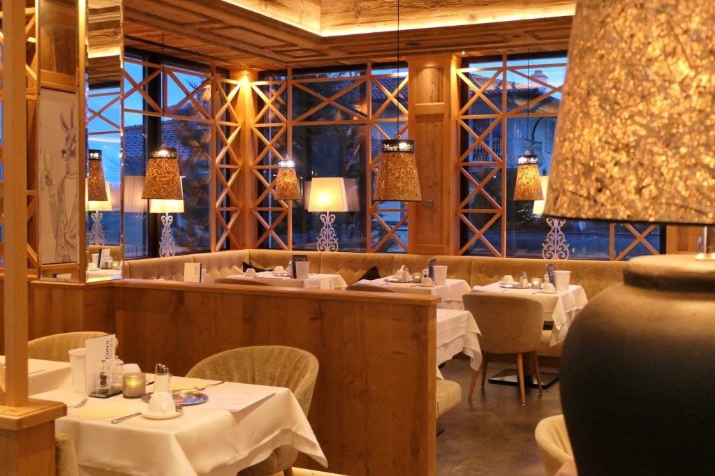 Im neuen Restaurant 1846 habt ihr freie Platzwahl und könnt euch beim Frühstück und Abendessen jeweils einen anderen Tisch in den unterschiedlich gestalteten Bereichen aussuchen.