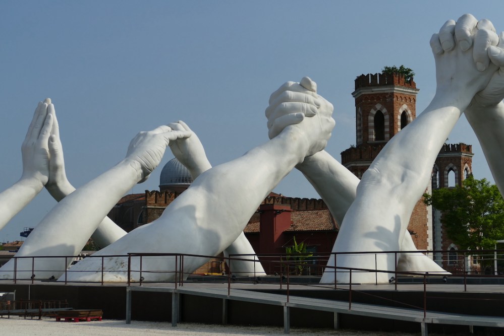 Zur 58. Biennale 2019 schuf Lorenzo Quinn, der Sohn von Anthony Quinn, nach seiner aufsehenerregende Skulptur „Support“, wieder eine monumentale Kunst. Sie steht in Arsenal auf dem Gelände der ehemaligen Schiffswerft, ist jedoch nicht Teil der offiziellen Biennale.