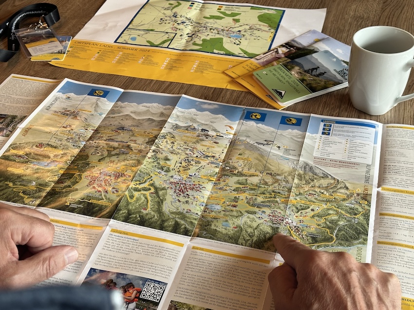Ausgestattet mit dem Hausschlüssel, einem Stadtplan und der Super Sommer Card gehts mit dem Auto durch die schmalen Strassen von Ladis, ganz nach oben an den Waldrand, direkt zur gebuchten Naturlodge Ladis.