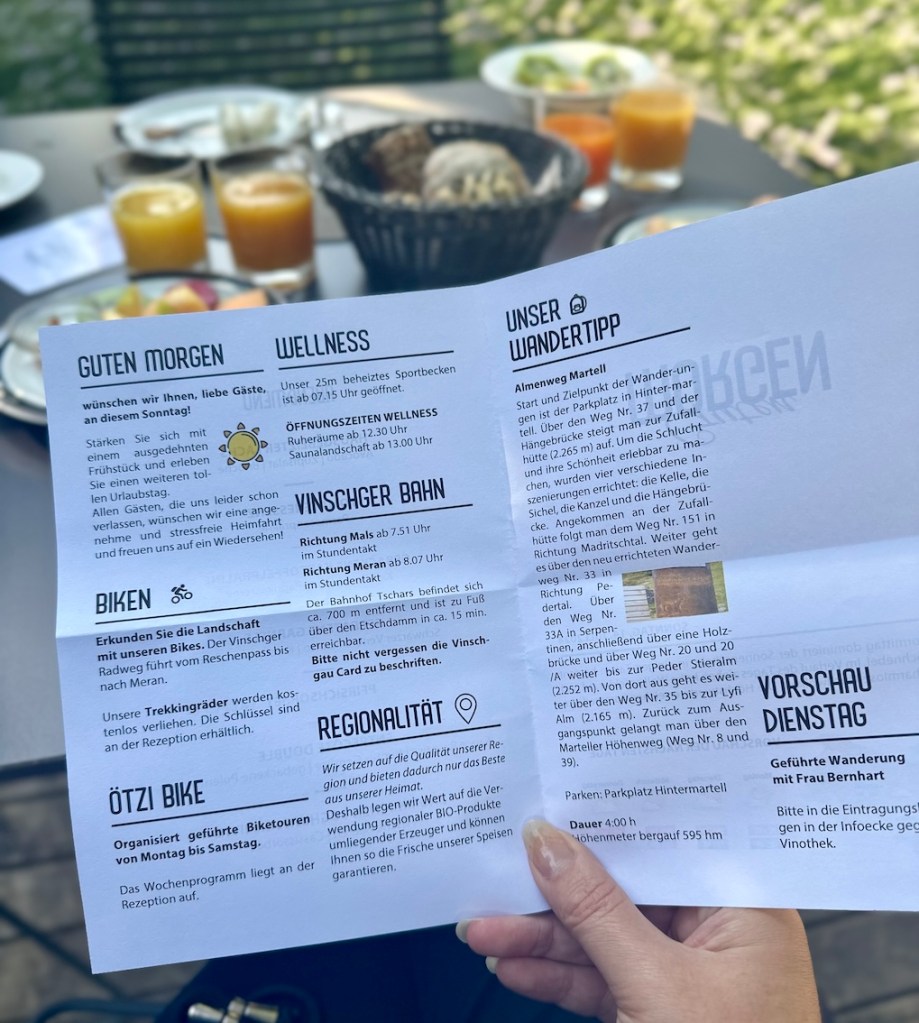Zum Frühstück liegt schon die Tagespost bereit mit Wander- und Ausflugstipps,