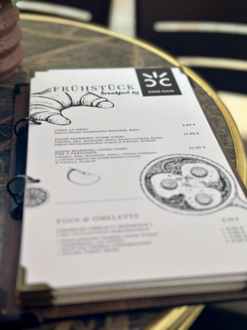 Hier wird auch das Frühstück serviert. Aus der Frühstückskarte kannst du dir dein a la card Frühstück zusammenstellen.