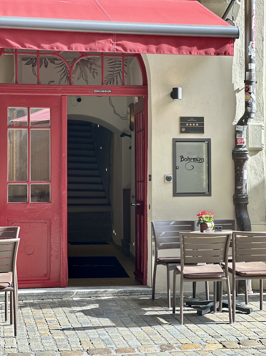 Ein paar Schritte weiter stehen wir schon vor unserem gebuchten Boutiquehotel, dem 4 Sterne Hotel Bohemian in der Gesandtenstraße.