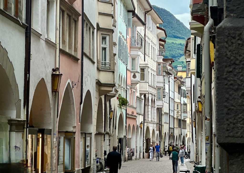 Vom Rathausplatz bis zum Obstmarkt erstreckt sich die Laubengasse mit ihren schattigen Arkadengängen, die seit dem Mittelalter Bozens zentrale Einkaufsstraße ist.
