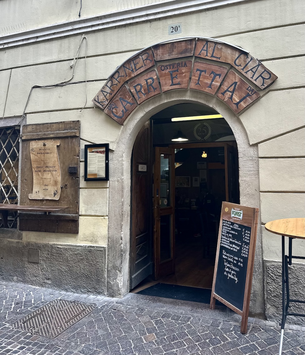 Nur ein paar Schritte entfernt, in der Dr.-Josef-Streiter-Gasse 20B, ist ein weiterer kulinarischer Stopp, die urige Osteria Dai Carretai – Zum Kärrner.