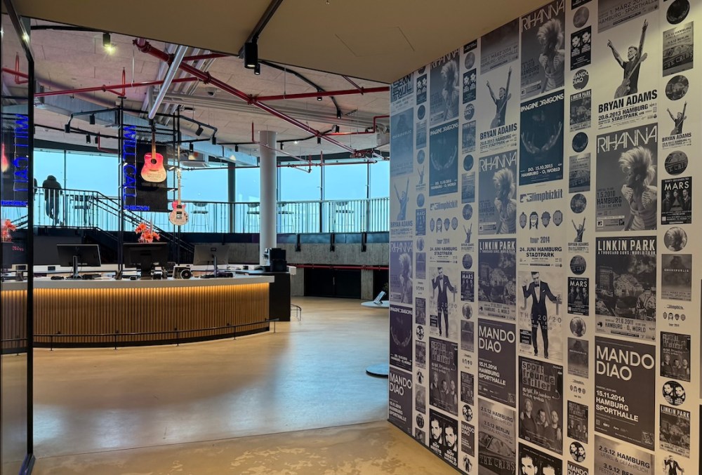 Auch auf dem Gang zum Zimmer Musik-Vibes mit vielen Konzert-Bildern und dezenter Musik.
