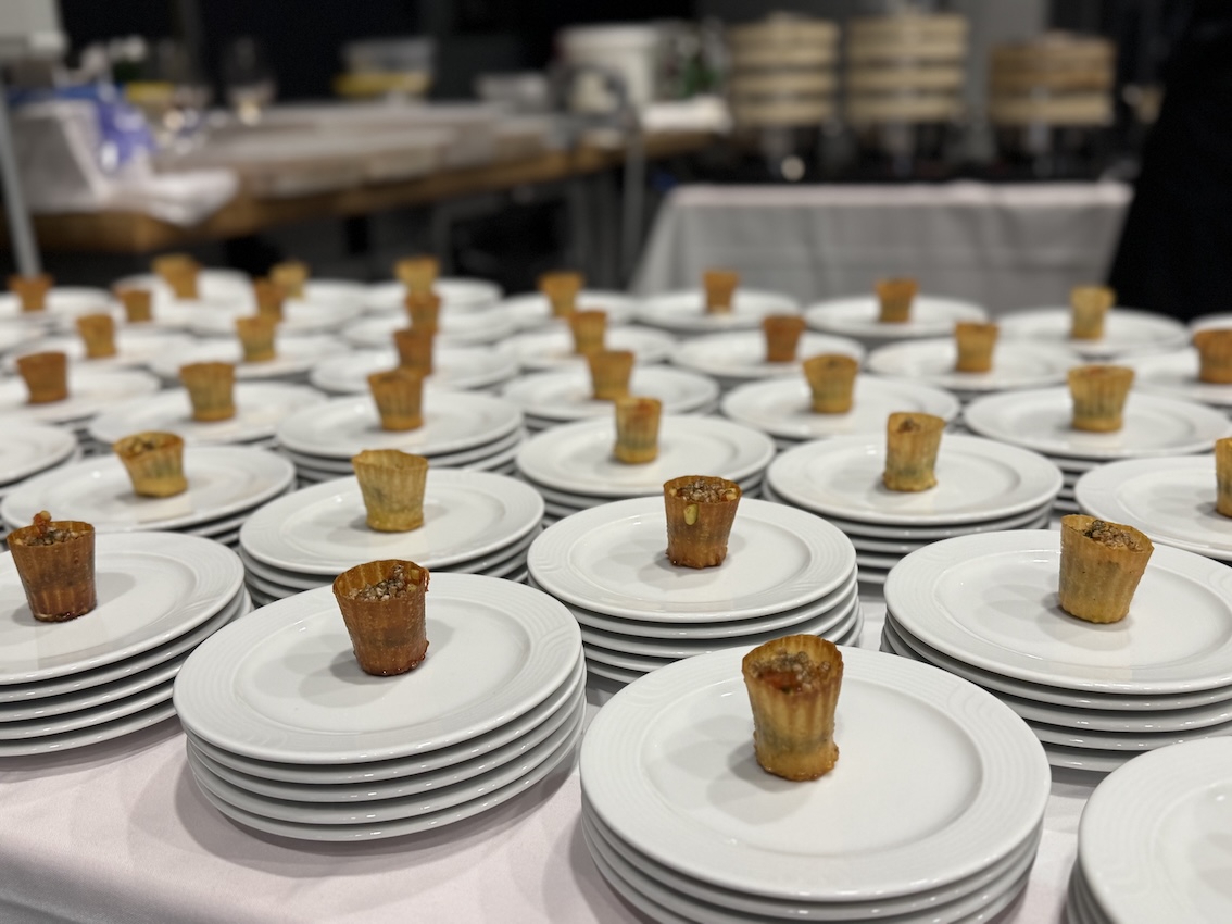 In der Montagehalle waren die 8 Stationen aufgebaut und dazwischen Stehtische. Die Genießer bedienten sich an den Kochstationen und schlenderten weiter zum nächsten Genuss-Stückerl.