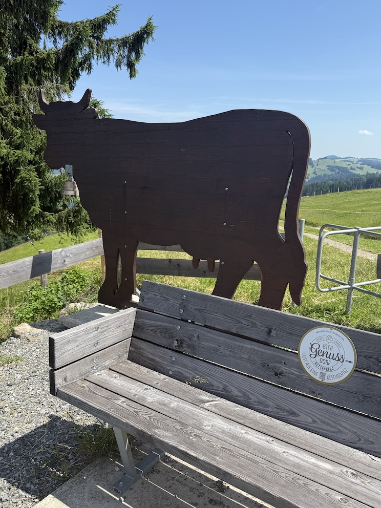 Die Lage auf halber Höhe des Grünten ist einmalig und sehr ruhig. Du hörst hier oben eigentlich nur die Kuhglocken und das Vogelgezwitscher.
