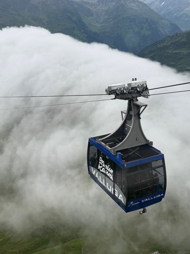 Die Galzigbahn brachte uns also hinauf zur Aussichtsplattform mit Blick weit über das Stanzer Tal. Von dort ging’s weiter mit der Vallugabahn I in schwindelerregende Höhen – bis fast auf 2.800 Meter.