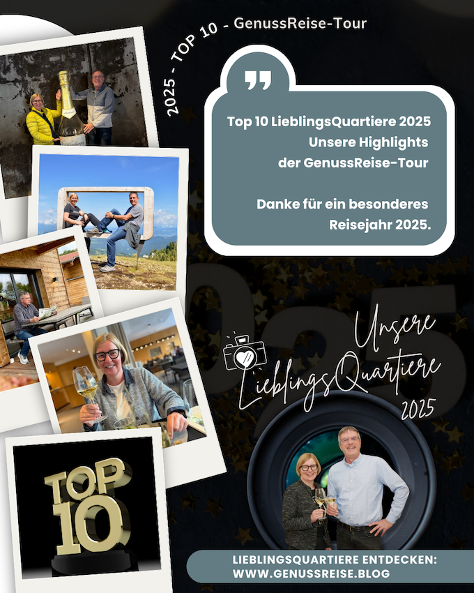 Wir sind dankbar für all diese Kooperationen und freuen uns schon auf viele neue LieblingsQuartiere bei unserer GenussReise‑Tour 2026.
